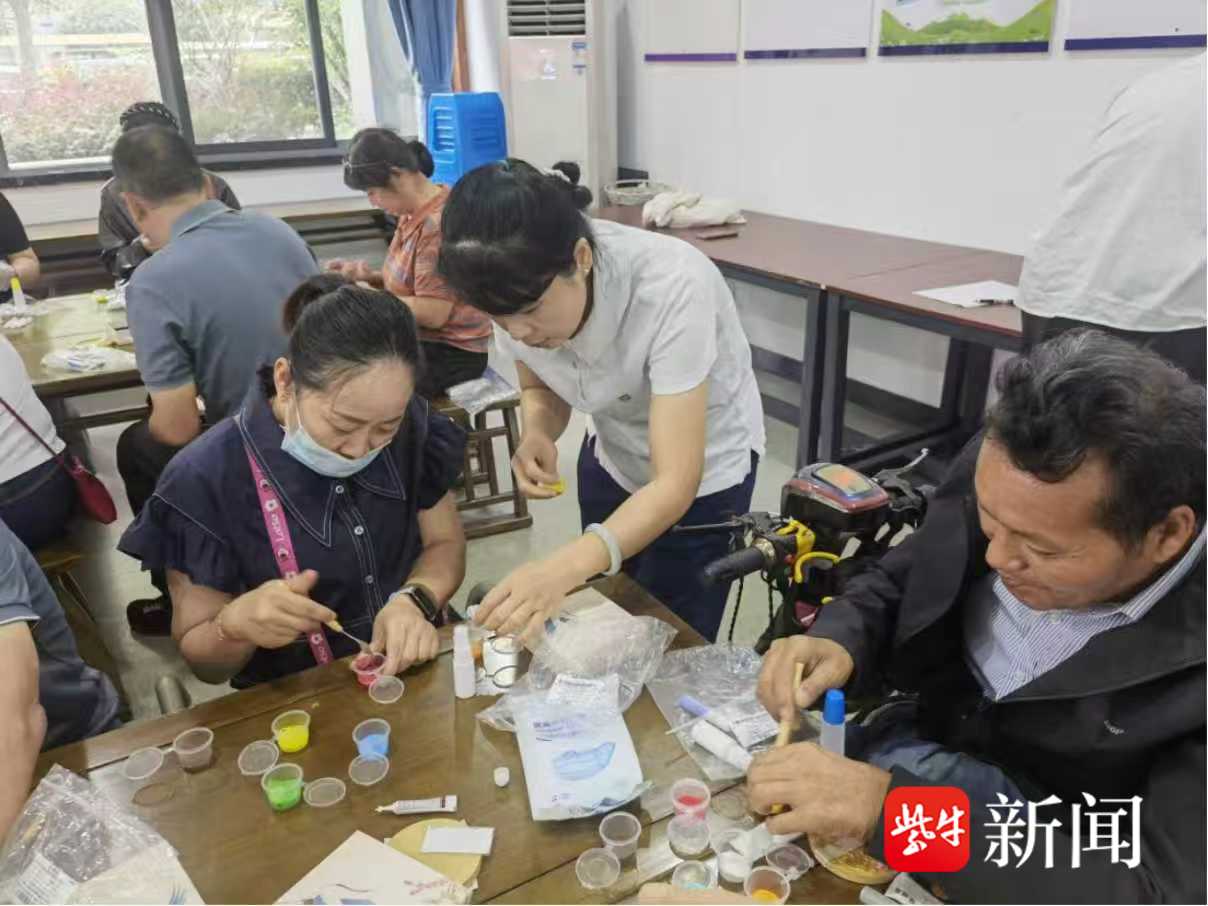 9月29日上午,南京市江宁区上坊社区聚心残疾人之家联合凤凰新华·江宁给辖区内的残疾人开展了一场主题党建活动和非遗掐丝珐琅制作培训活动。