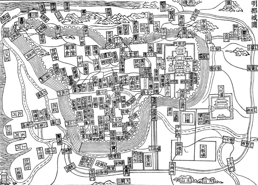 《明都城图》中的四重城垣(图源《金陵古今图考》)