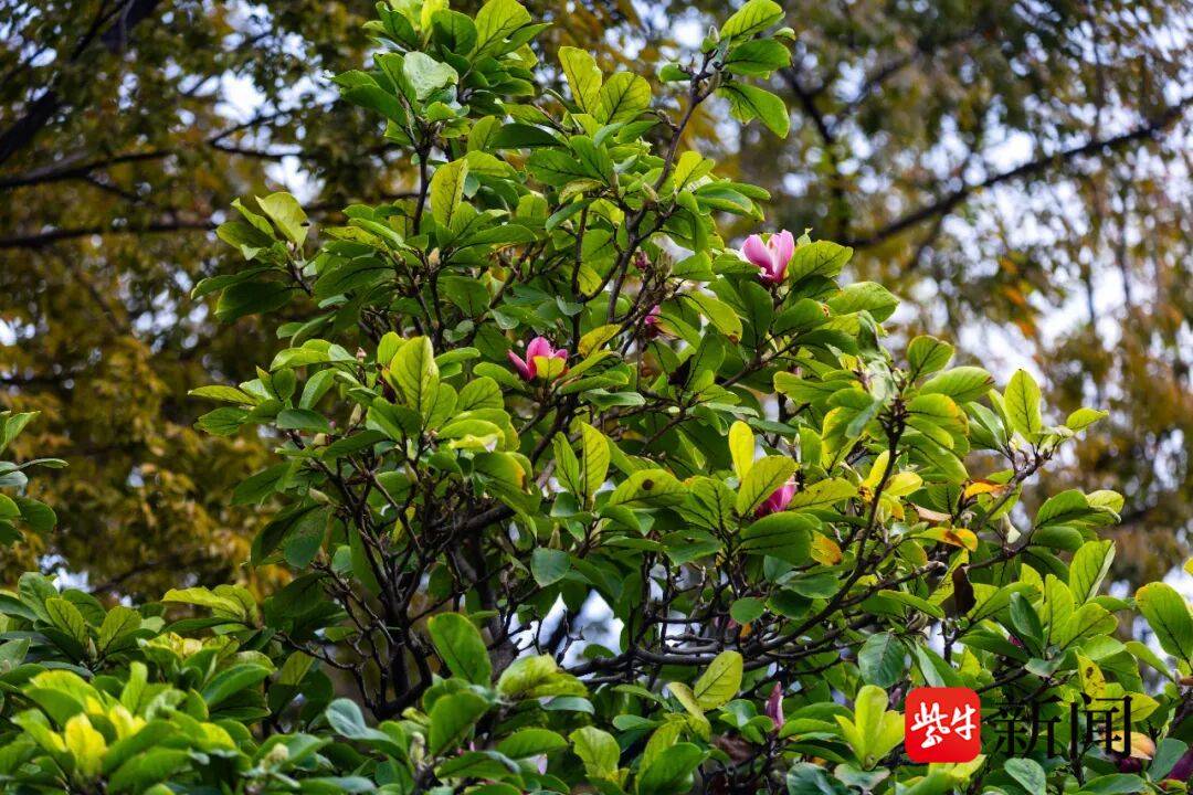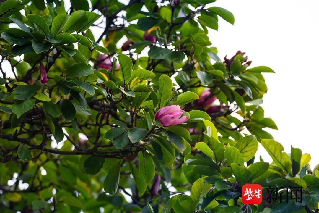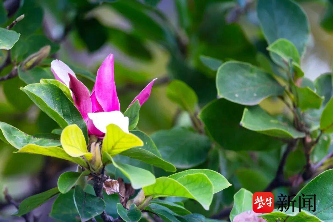 作为玄武湖春日花事的“顶流”之一,景区内的玉兰正常花期集中在3至4月,惊蛰过后便会陆续舒展花苞。但同样受到持续高温影响,在环湖路新模范马路段的紫玉兰上演“反季花事”,寒露节气已过,却开出了花朵。紫色的花朵在绿叶的映衬下,格外娇艳。
