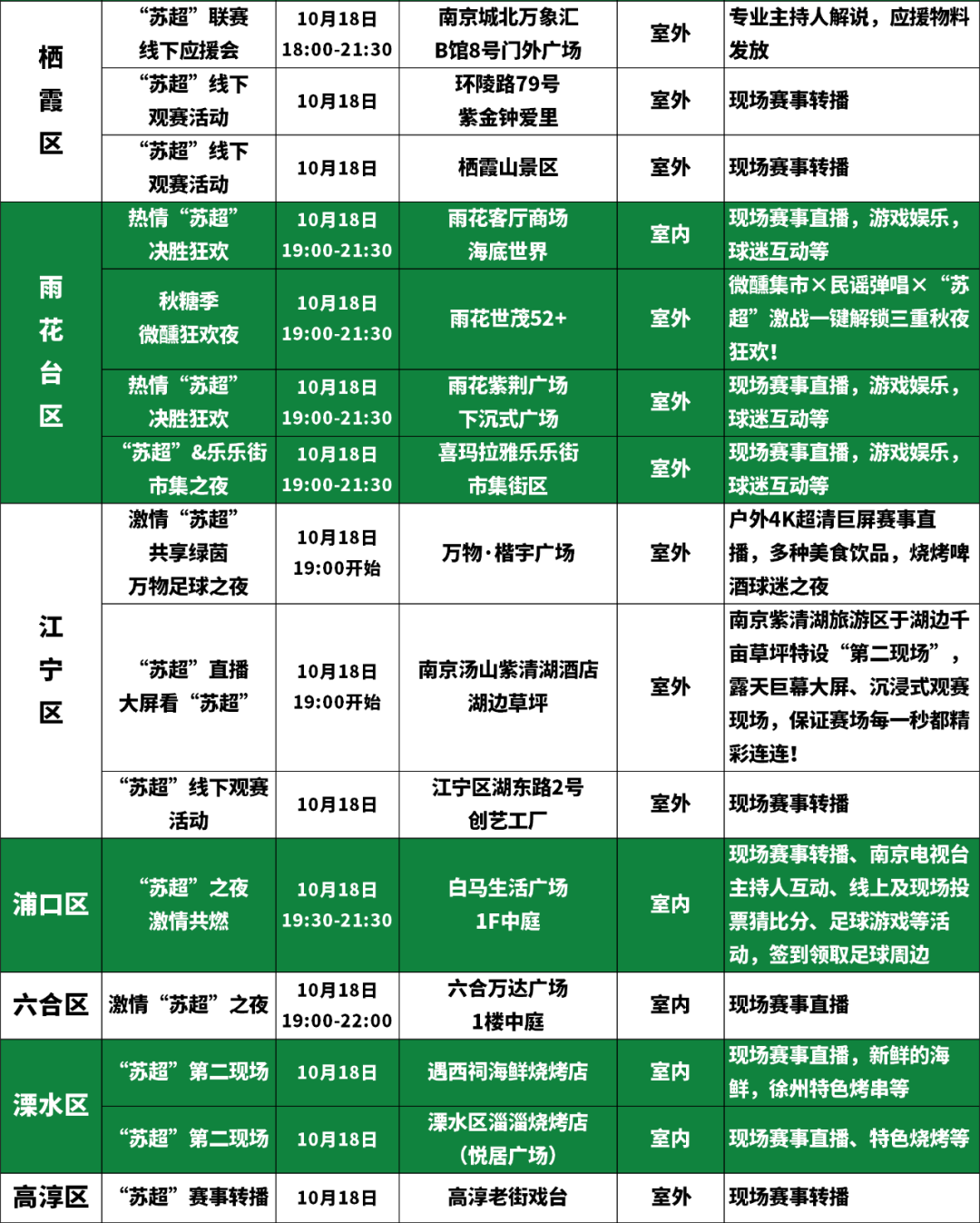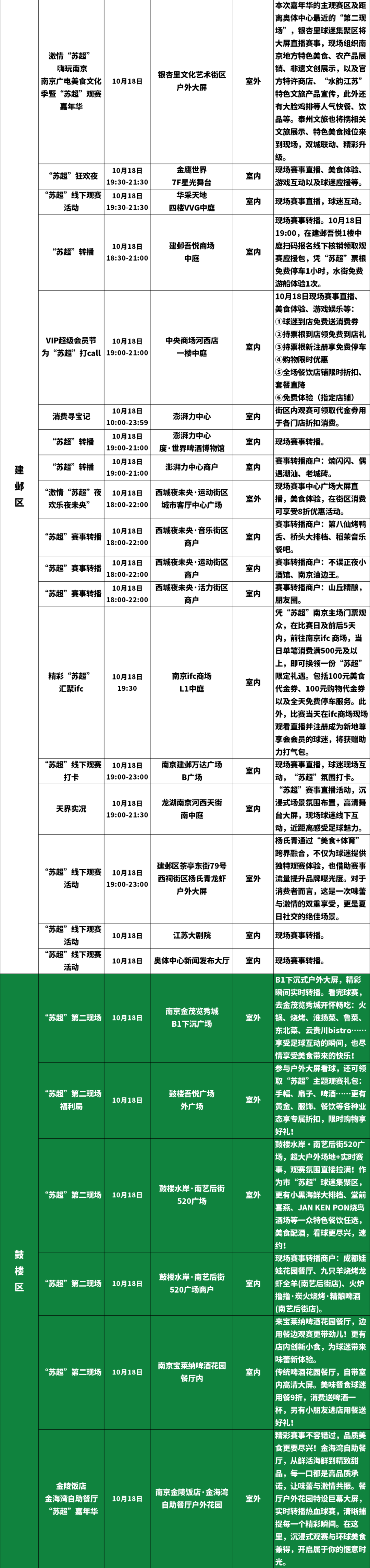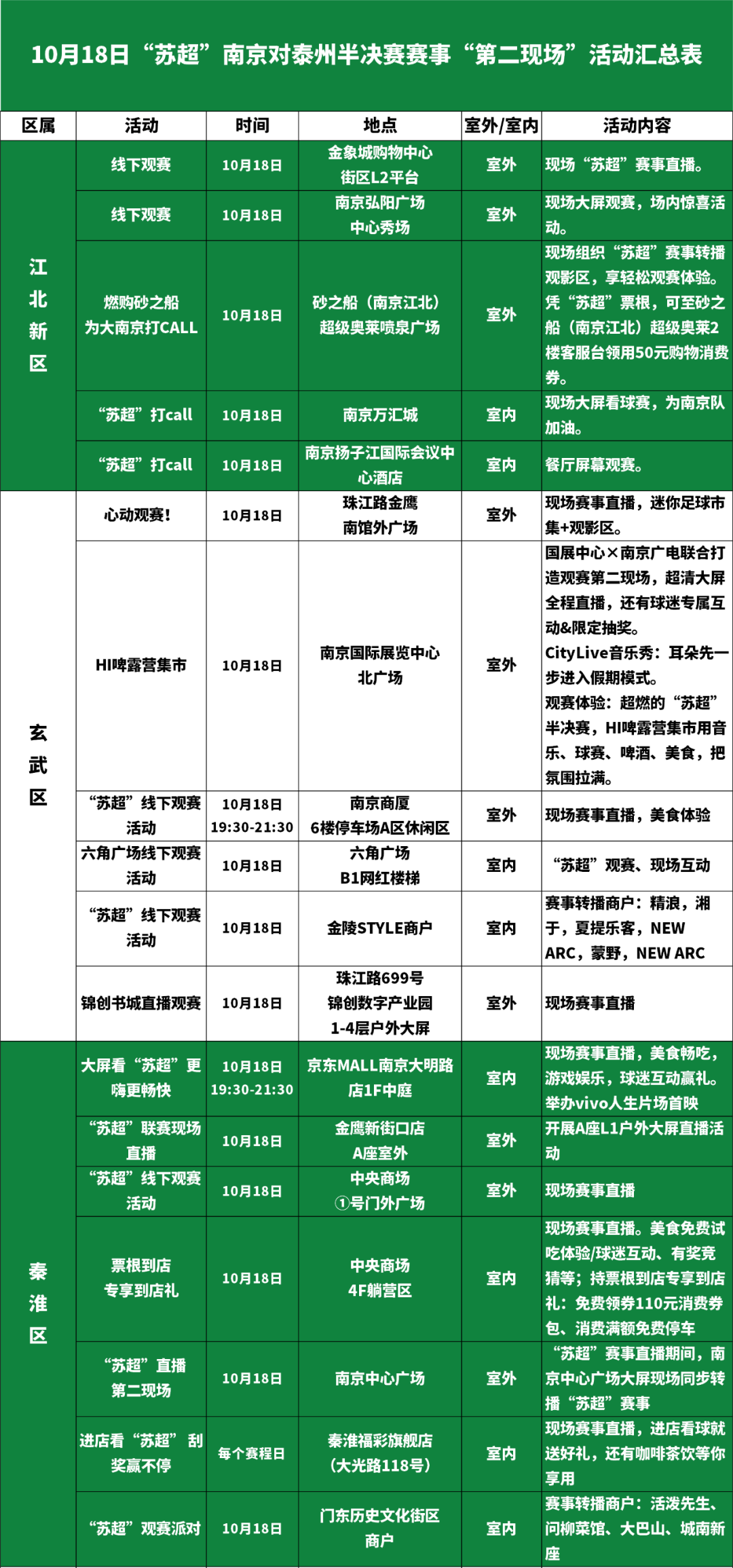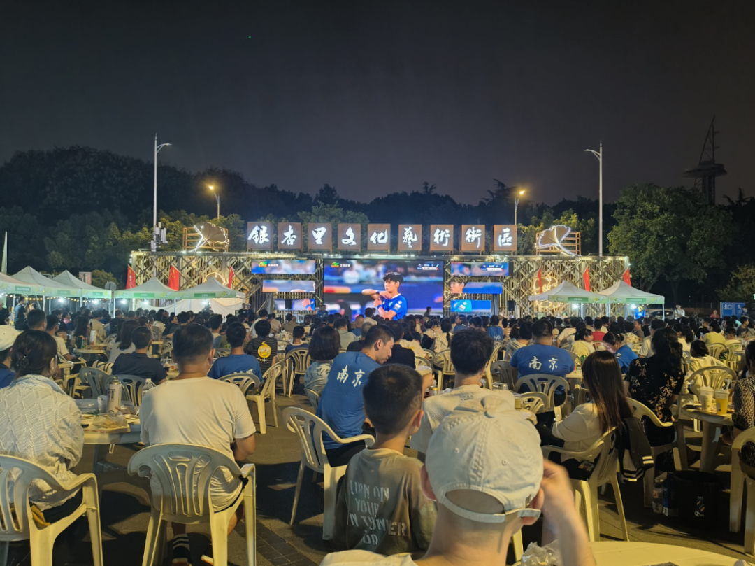 作为距离南京奥体中心最近的“第二现场”,银杏里球迷集聚区将持续进行赛事大屏直播,在大屏前放置座位590个,供广大球迷观看比赛、品尝美食。