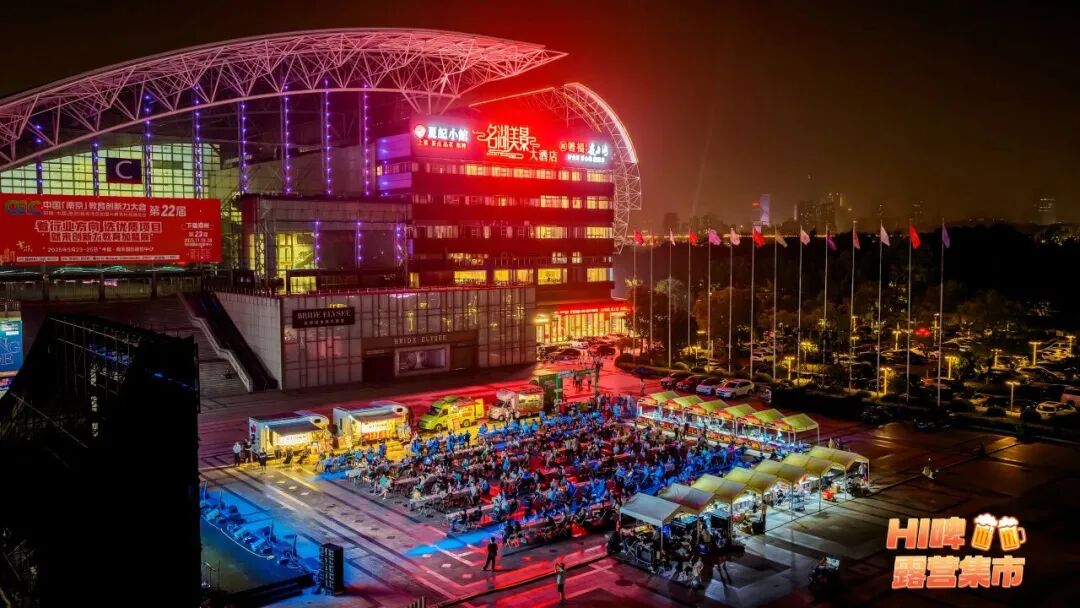 南京国际展览中心将于10月17日到19日持续举办HI啤露营集市,用音乐、啤酒伴随“苏超”的超清大屏全程直播。