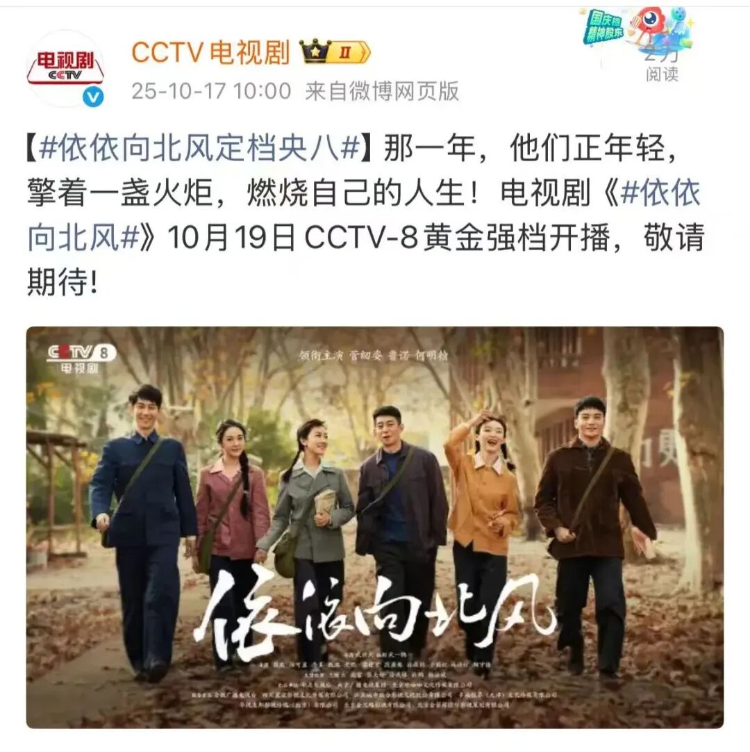 如今,一部从南京走出的年代剧《依依向北风》,将把这段激荡岁月搬上荧幕。10月17日,@CCTV电视剧 官方微博宣布这部年代剧将于本周日(10月19日)起登陆央视八套黄金档,38集连播,带观众重温上世纪七八十年代的热血与温情。
