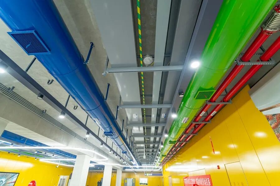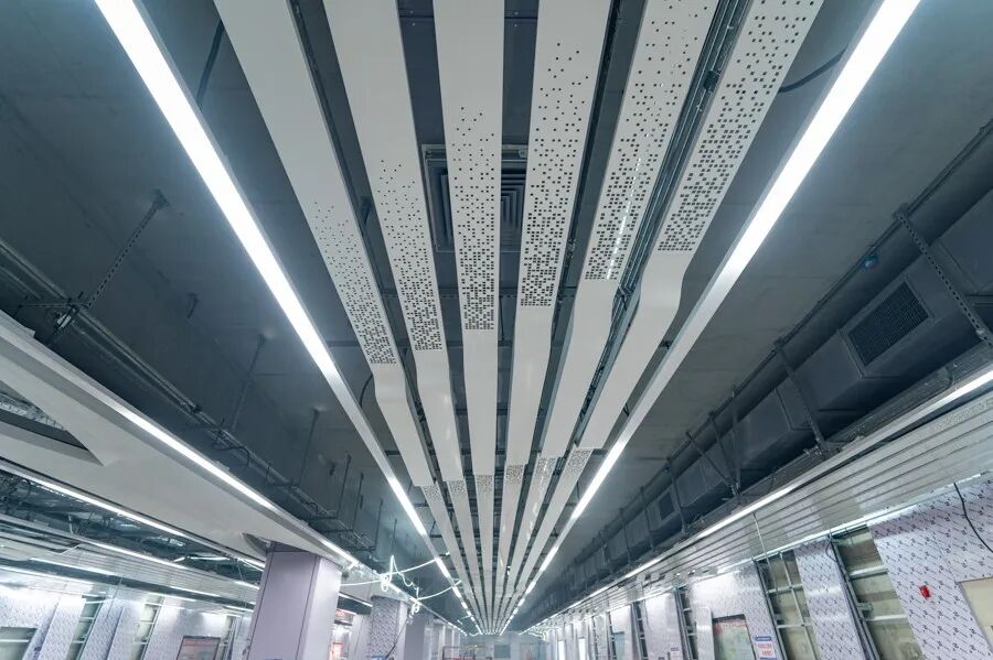 “这种‘管道外露’设计是技术与美学的双重突破。”现场负责人介绍,车站通过BIM技术梳理管线走向,将风、水、电设施整合到一体化综合支吊架上,“不仅日后维修不用‘拆吊顶’,站厅也少了压抑感,抬头就能看清管道的有序美感”。