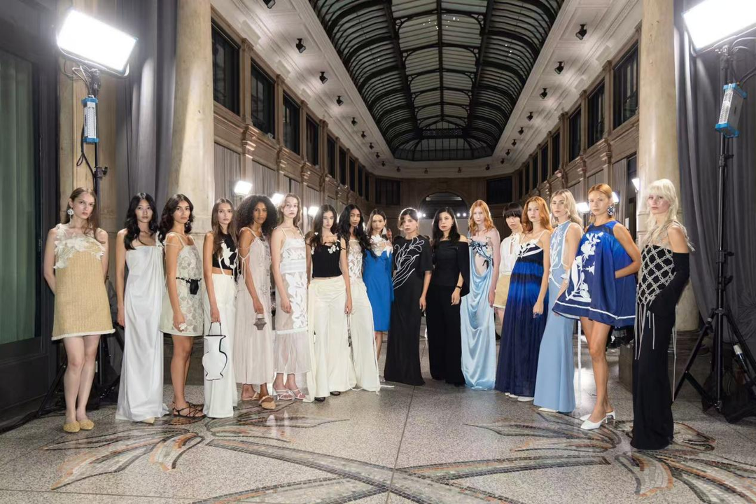 九月的米兰,空气中弥漫着时尚的气息。在梅拉维格画廊这座充满现代艺术气息的空间里,熏若的15套设计以独特的东方气质征服了国际观众。灵感源自剪纸、竹编、玉雕等古老技艺,设计师以"兰生幽谷,不以无人而不芳"为精神内核,将流动的书法线条、竹之清骨与兰之幽韵融入设计,将宋代美学中的简约雅致与金缮工艺的残缺之美完美融合。据悉,该系列在米兰展出期间,就已通过社交媒体平台获得多位国际时尚人士及海外华裔明星的关注,为中国设计赢得了国际掌声。