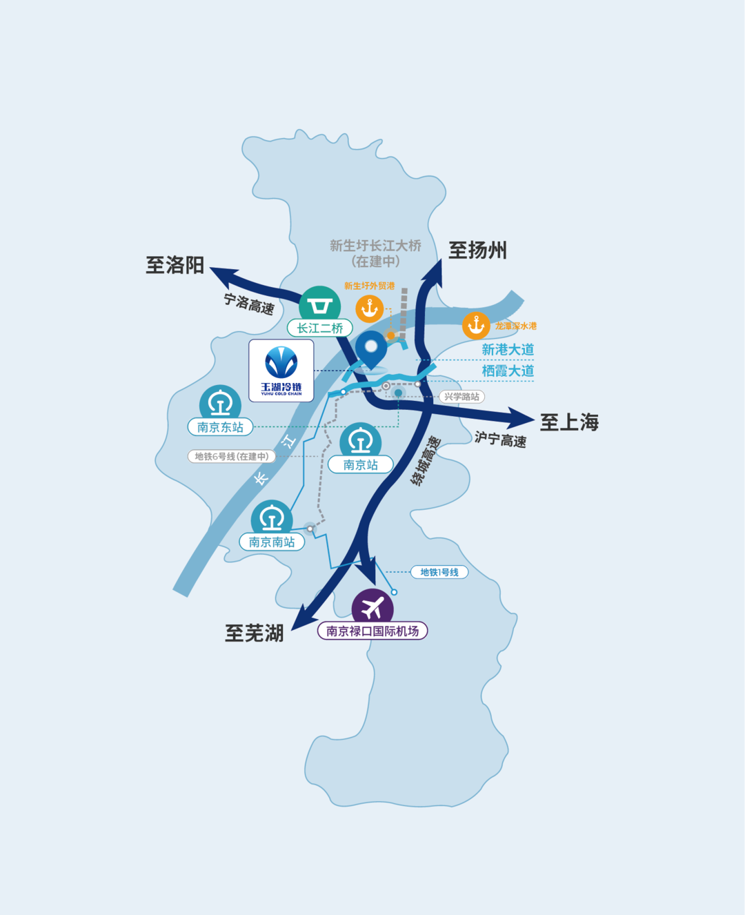 为匹配玉湖冷链打造“华东区域首个一级冷链枢纽”的需求,南京经开区跳出单一地块思维,针对性提供新港、龙潭两个片区用地,分两期构建“功能互补、联动发展”的格局:新港片区聚焦“展示交易体验”,依托近主城的区位优势,打造冷链食品线下交互核心;龙潭片区则借力国家物流枢纽的大交通优势,承担仓储、分拨功能,为项目接入全球高端冷链供应链奠定基础。