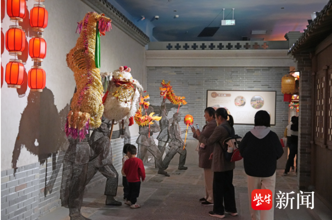 以清代六合县府街为蓝本复刻而成的“非遗老街”,青石板路蜿蜒通向记忆深处,古韵悠然,骨牌灯、竹镇高跷表演、烙画、剪纸、雨花石雕刻、六合印社等构成了一幅活态的非遗画卷,让人忍不住驻足细品,游客还能亲手体验制作。