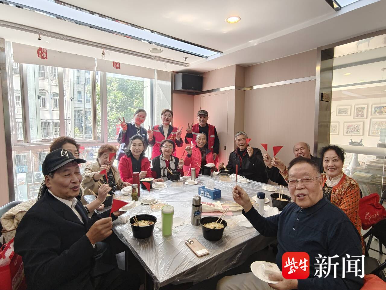 社区“长江之歌”合唱队的叔叔阿姨们还表演了《莫斯科郊外的晚上》《拔根芦柴花》《革命人永远年轻》等精彩节目,活动室里充满了欢声笑语,邻里情谊在温馨的氛围中悄然升温。大家陪老人们吃面、聊天,提供引导、协助等服务,一同共享佳节的美好时光。