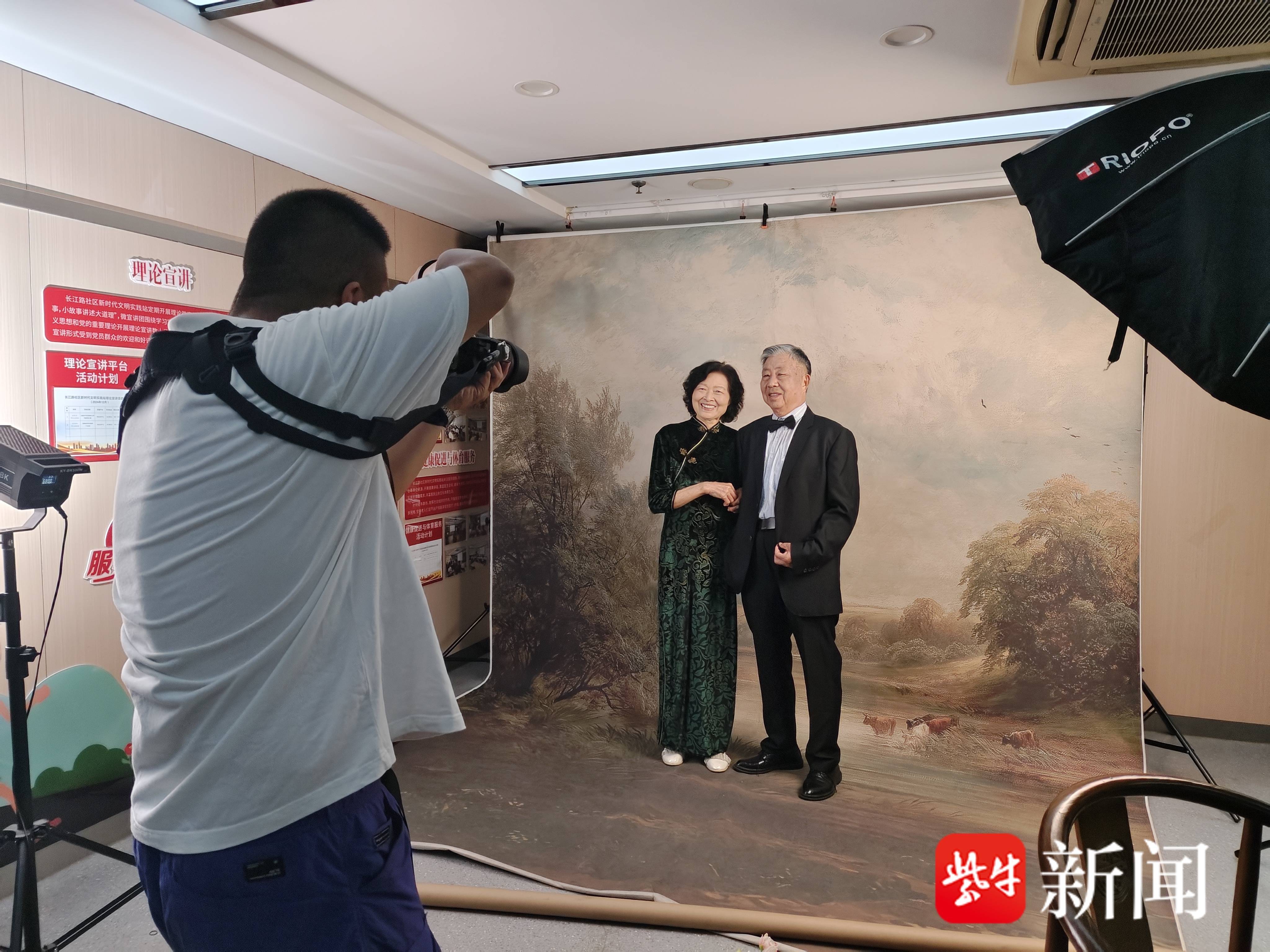 早在9月初,长江路社区便联合雨花台区童话家影像服务中心共同启动“爱在永恒——用镜头定格最美夕阳红”摄影活动。不少老人是第一次体验这样专业的摄影服务,脸上满是期待与欣喜。70岁的娄阿姨换上素雅的旗袍,对着镜子整理了许久,拍摄时紧张又兴奋,当看到相机里自己的模样时,忍不住感叹:“这辈子都没拍过这么好看的照片,谢谢社区想着我们!” 还有正好结婚50周年的薛阿姨和张叔叔,两人在镜头前手拉手,充满了甜蜜与幸福。就在重阳节前两天,这些承载着美好回忆的照片如期送到老人手中。