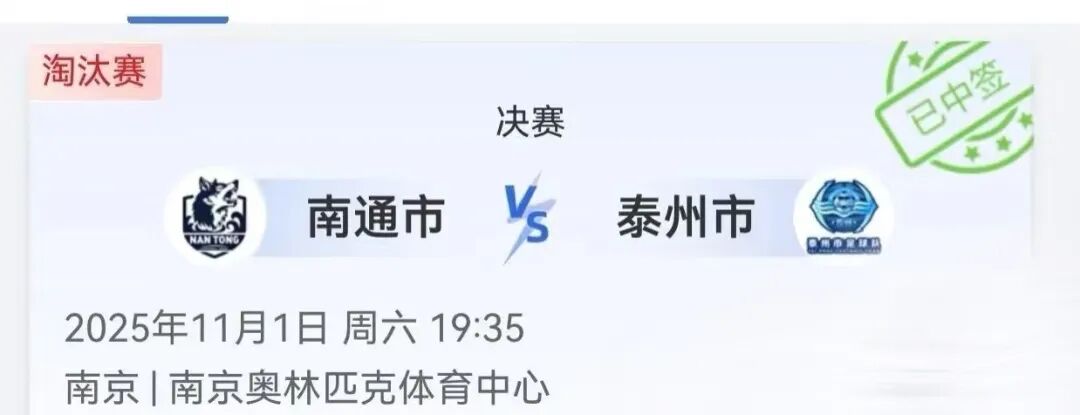 10月28日,江苏省城市足球联赛总决赛的购票抽签和公证工作已完成。根据公证结果,决赛(南通VS泰州)中签率为1.2%。