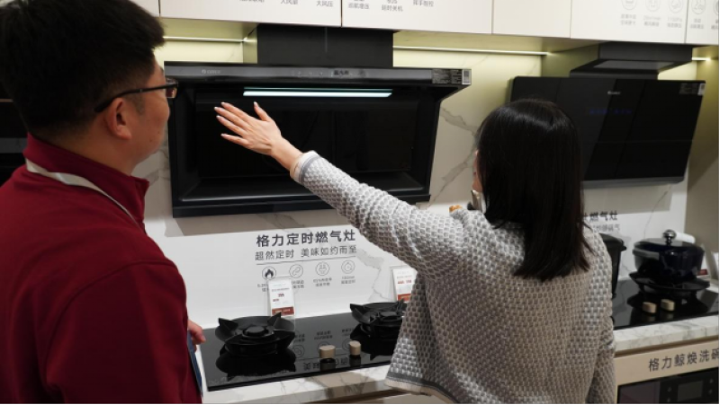 (图为一位顾客在体验格力厨电产品)