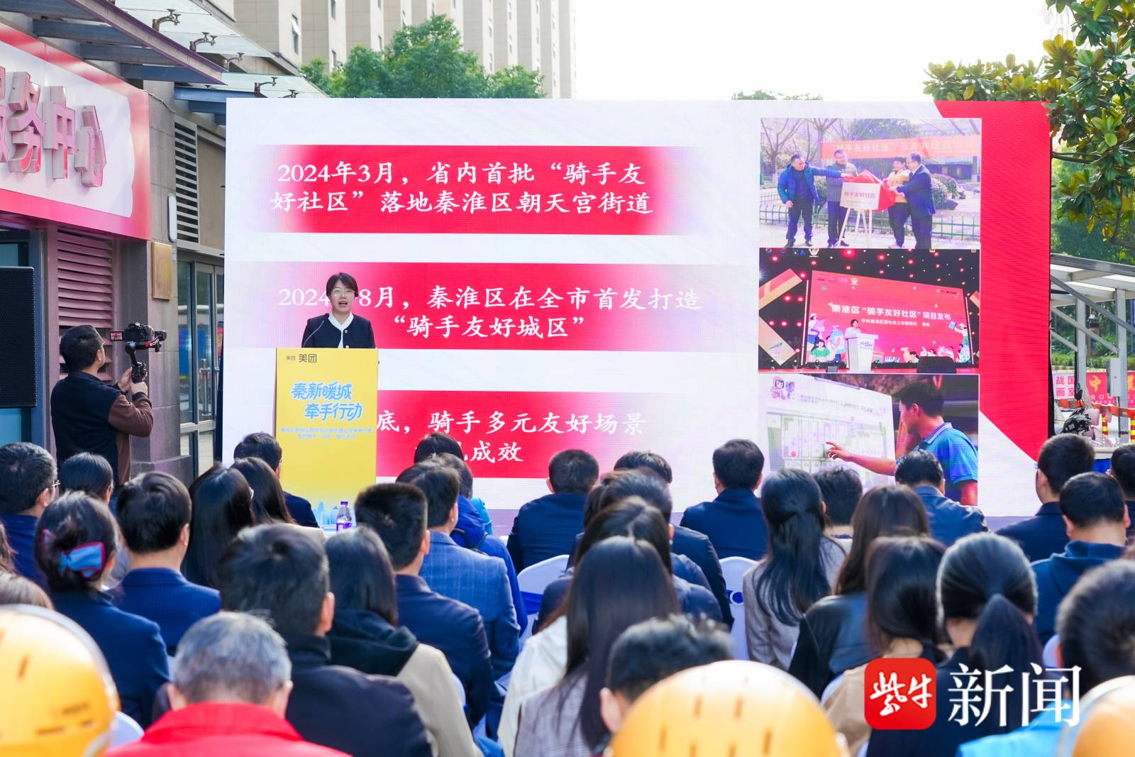 南京夜生活论坛网10月29日讯(记者 张可)10月28日下午,南京“秦新暖城·牵手行动——秦淮区新就业群体友好城区建设成果展示暨美团骑手‘双亮’提升活动”在秦淮区光华路街道紫杨北苑社区党群服务中心广场举办。活动集中展示了秦淮区在推进新就业群体服务与融入基层治理方面的阶段性成果,并正式发布了美团骑手“双亮”提升行动。