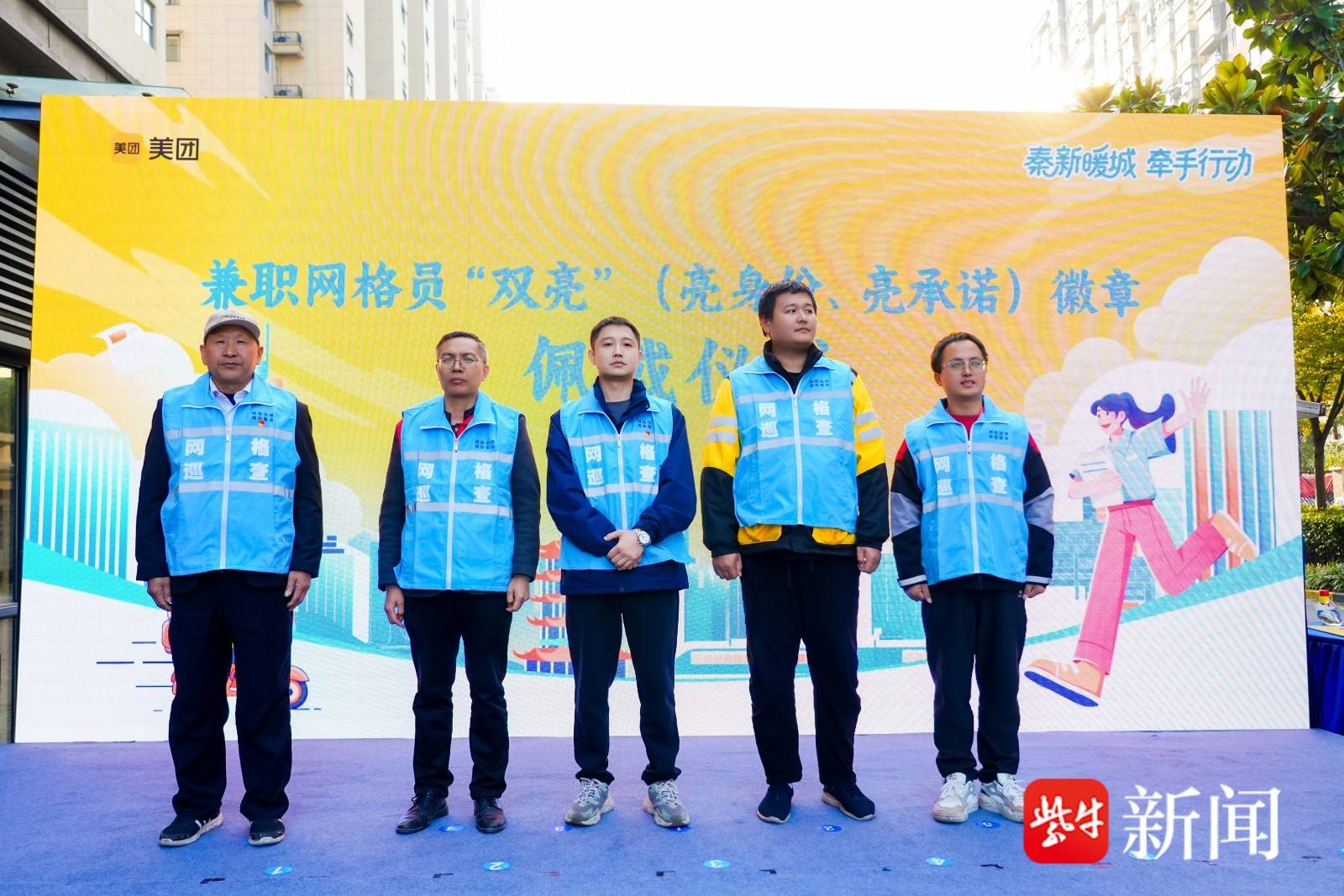 活动还为新就业群体代表佩戴兼职网格员“双亮”徽章。来自顺丰、美团、车融汇、快易洁及物业管理行业协会的代表们接过了象征责任与荣誉的徽章,正式亮明“社区兼职网格员”身份,承诺参与基层治理,成为城市的“流动探头”和“平安前哨”。