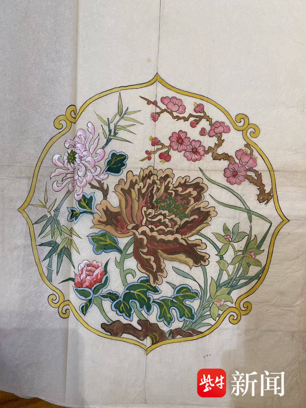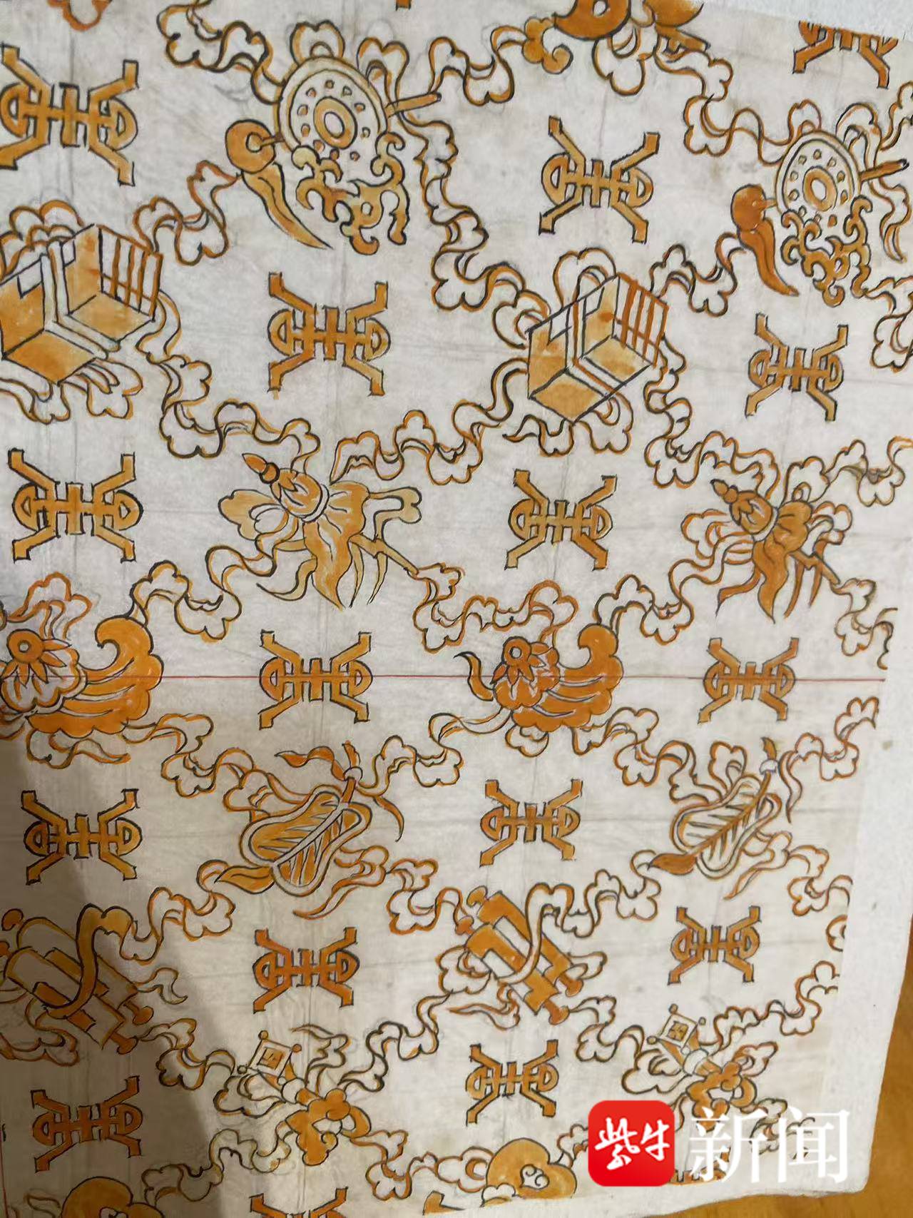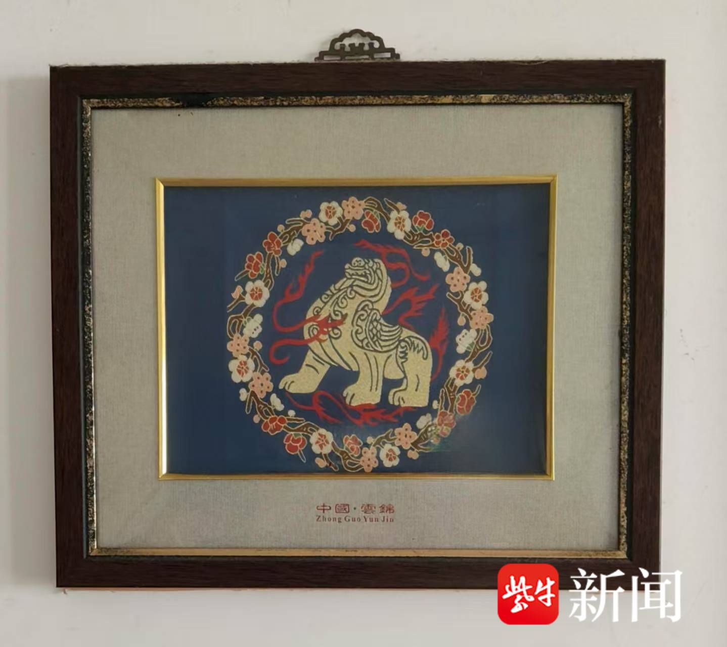 “金丝线织就的辟邪图腾与梅花纹样在光阴流转中依然熠熠生辉,仿佛凝固了时光”