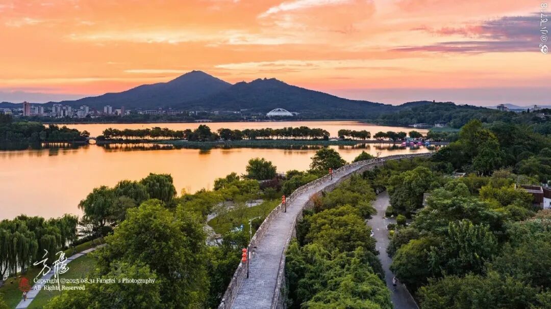 ○走进玄武湖,整个人仿佛从疲惫快节奏的现代穿越到另一个平静悠闲的世界。湖面抚平我的急躁,湖风抚慰我的心灵,就如同走进桃花源的渔人,豁然开朗,心中的褶皱都被抚平了。坐在湖边的石头上,感受风吹过湖面,带着湿润的水汽沐浴我,带着泥土的芬芳拥抱我,带来人群的嬉笑,夹杂着鸟儿振翅的声音,鱼儿跃起的声音。好似嘈杂,却又出奇的宁静。我忘却了一切,只是享受此刻的平静。