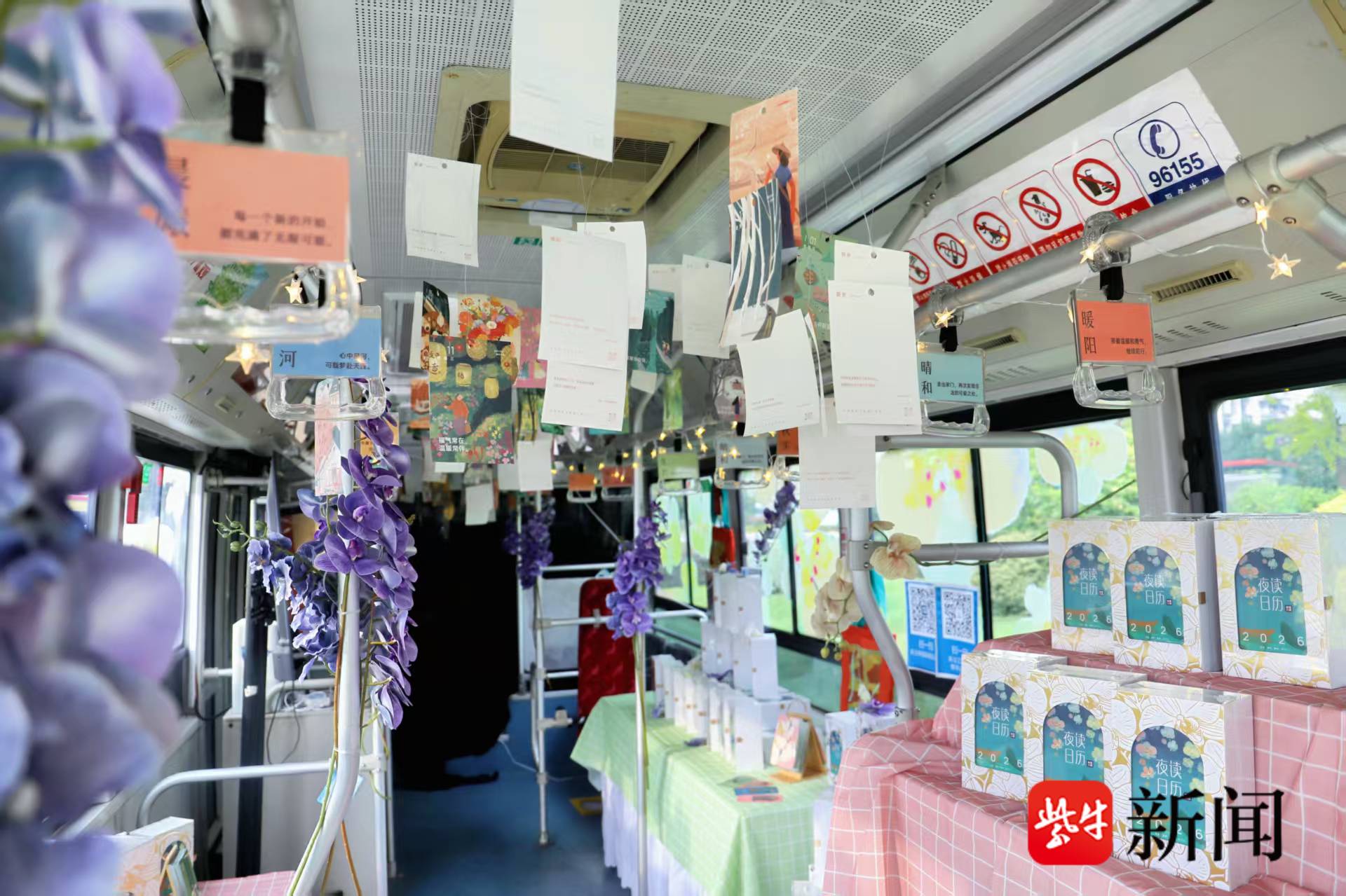 与此同时,另一辆“三联号·人文专线”巴士也以其温馨氛围吸引众多目光。巴士外观点缀花艺,车内拉手印有暖心句子,配合精选的人文社科书籍与舒适阅读区,为市民营造出沉浸式的阅读空间。