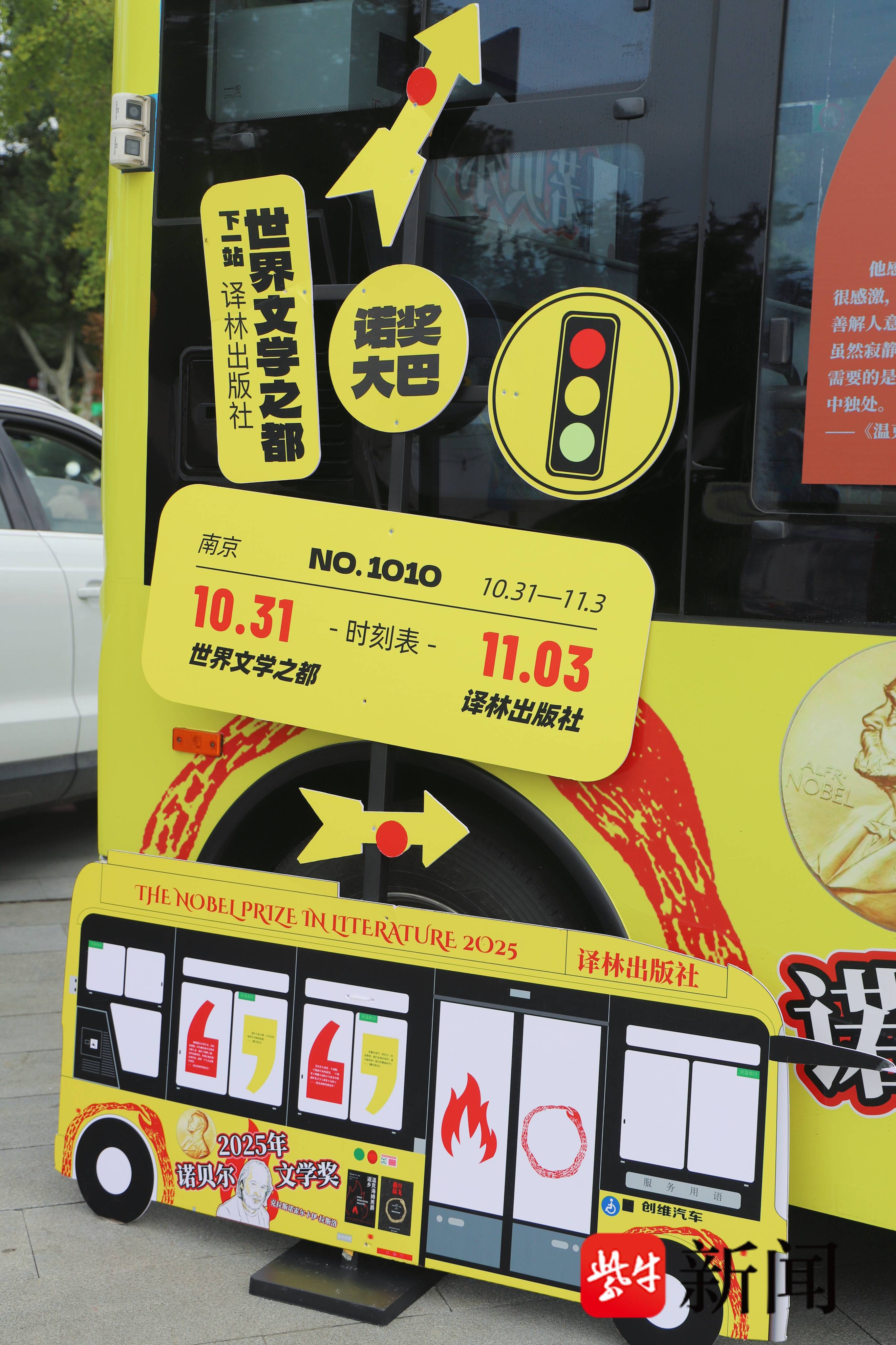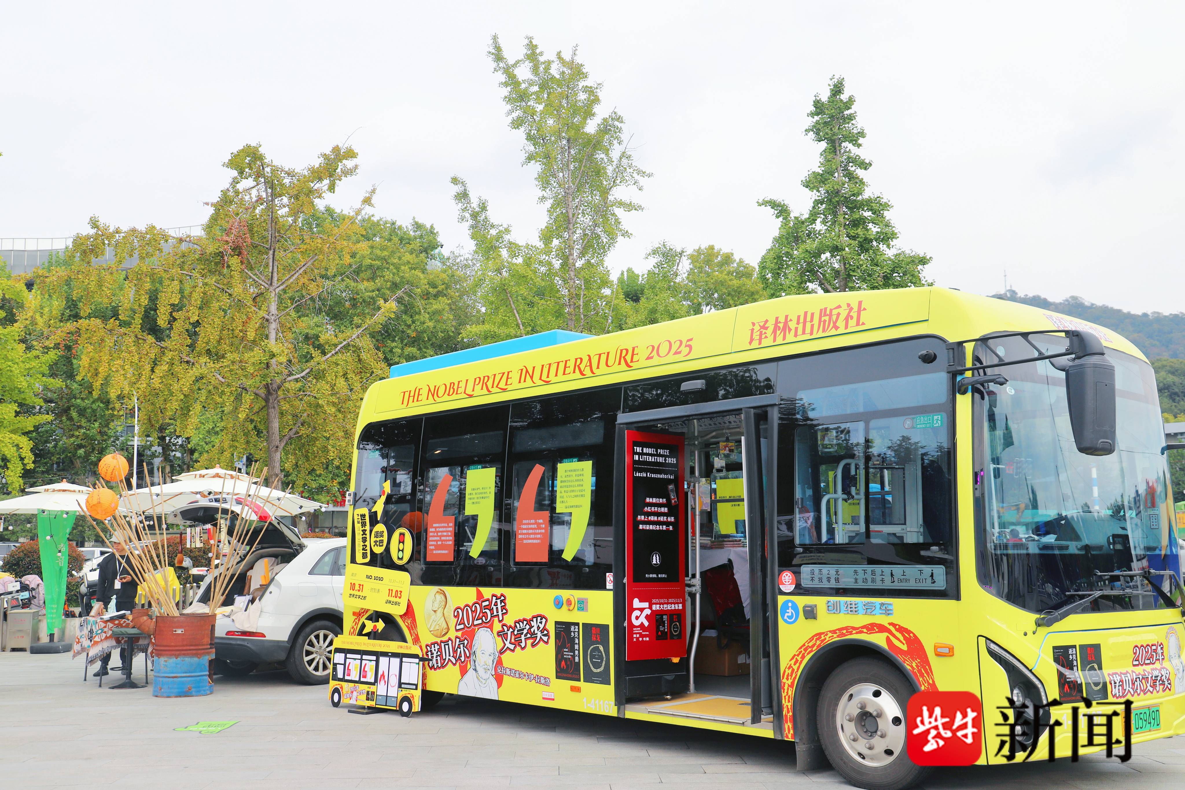 2025年诺贝尔文学奖揭晓不久,匈牙利作家拉斯洛·克拉斯纳霍尔凯的代表作已被迅速搬上了南京一辆特别的公交车。走进这辆“译林号·诺奖文学大巴”,仿佛走进了一个移动的世界文学殿堂。除了新晋诺奖得主拉斯洛的代表作,车上还集结了约恩·福瑟、黑塞、海明威、加缪等历代诺奖得主的作品。