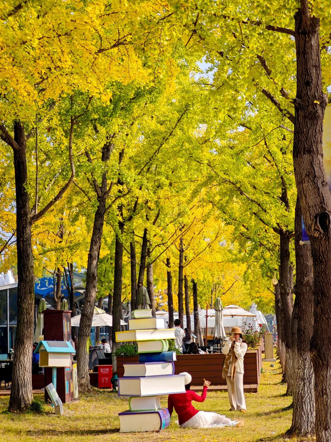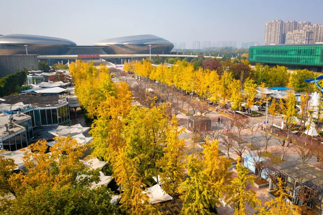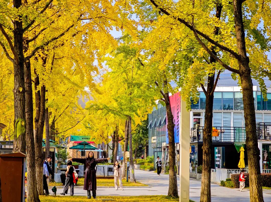 此时的银杏里文化艺术街区格外迷人,银杏与现代感设计的建筑相映成趣,街区内还设有不少休憩座椅,供你细细欣赏。