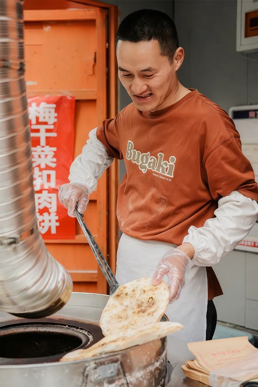 以一碗三鲜炒面封神的金记面馆,店内墙壁上一整面磁带,不知是多少人的青春记忆;曙源大肉面,虎皮大肉大得能“过桥”;徐州鸡蛋火烧,外脆里嫩,路过闻着就让人食欲大开;黄家馄饨,铁心桥馄饨扛把子;江泉路公交站旁,三江学院的十年老友“一个安徽人在江苏做着浙江的饼”,摊主大刘的梅干菜扣肉饼堪称一绝。