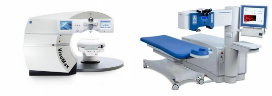 △ 蔡司VisuMax全飞秒激光手术系统(左)与阿玛仕1050RS准分子激光设备(右)