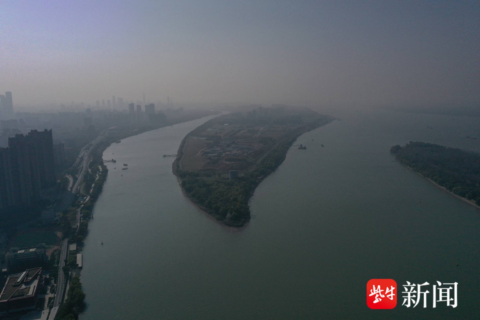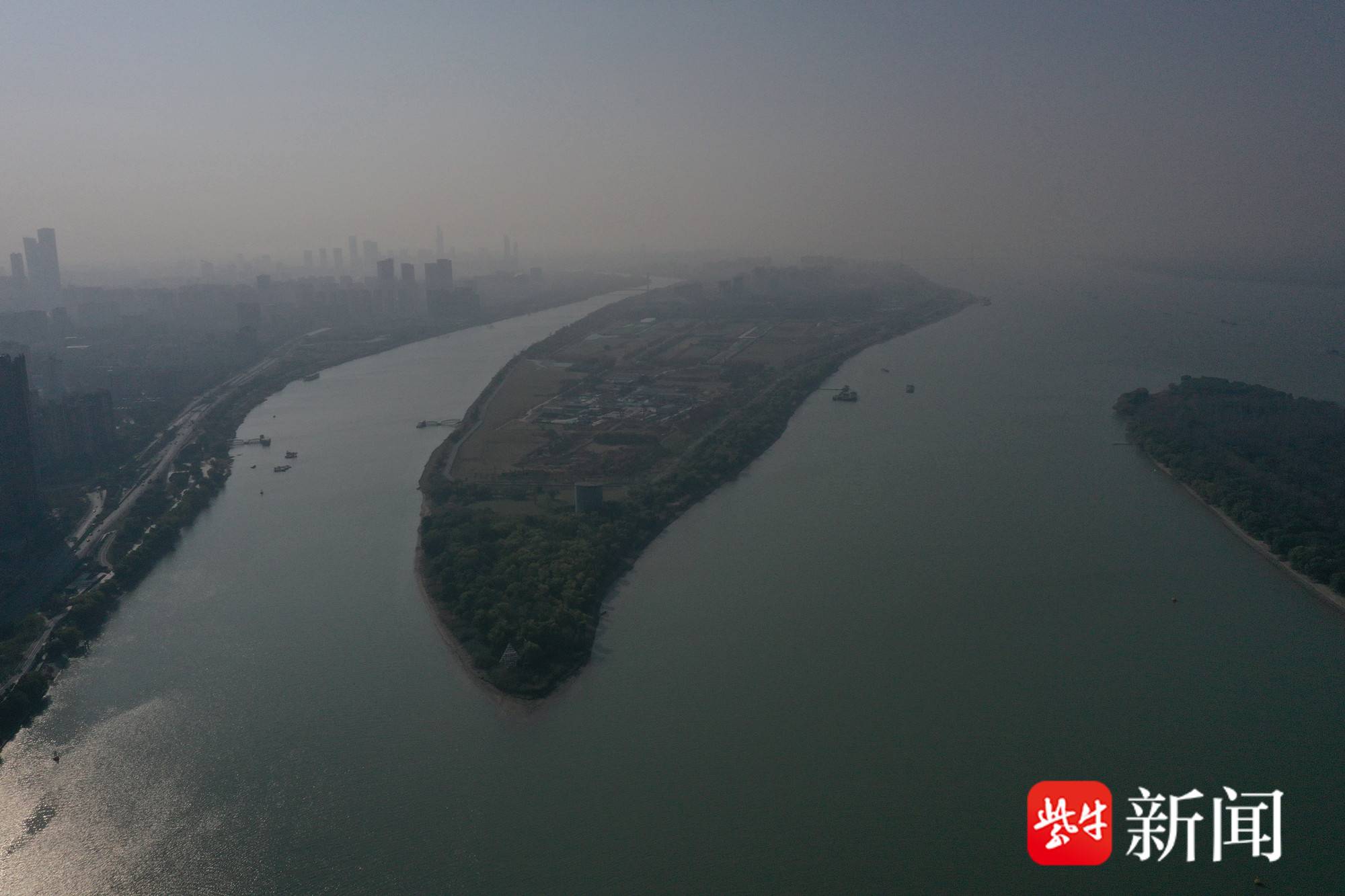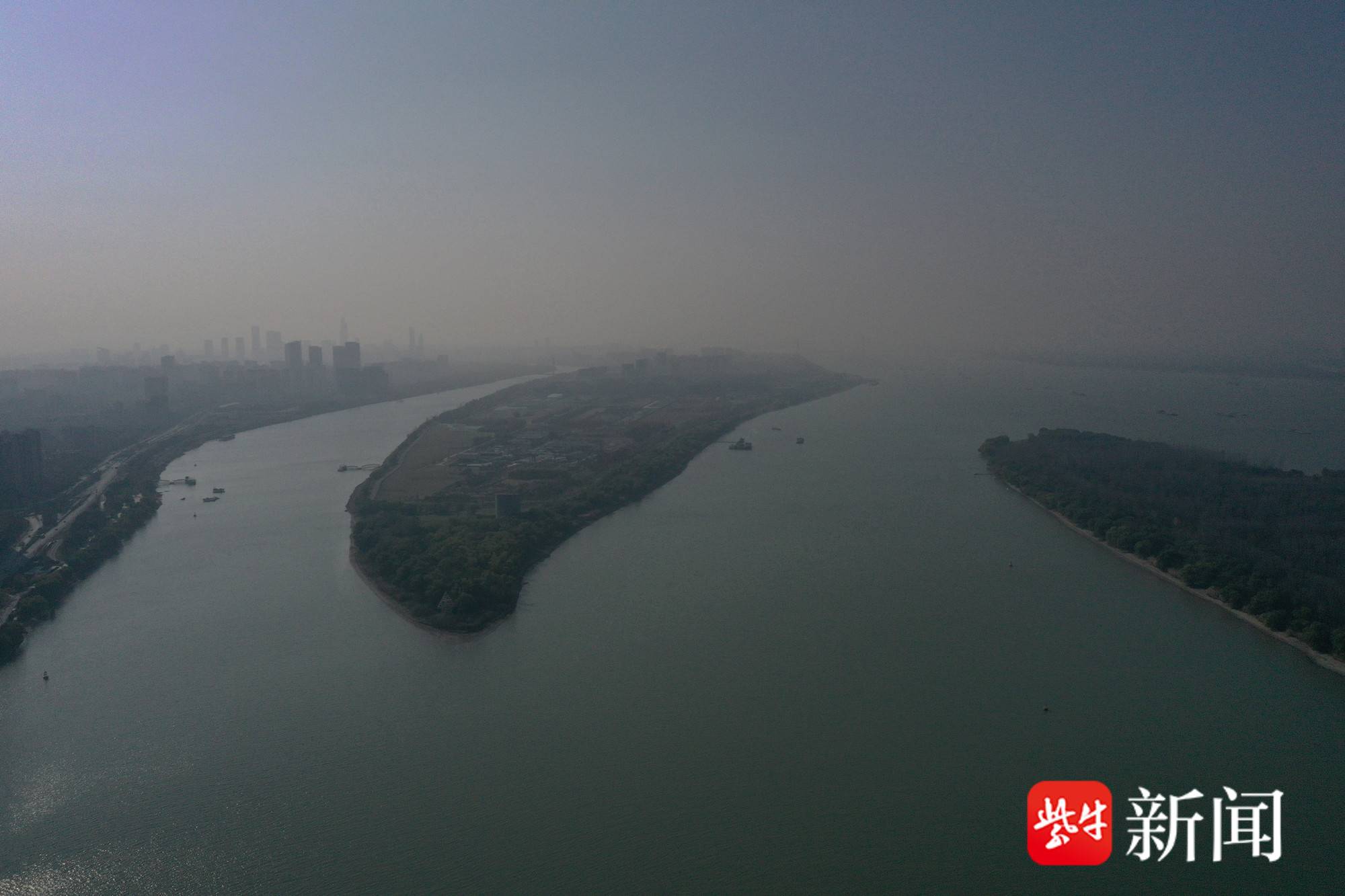 南京冬日清晨中的江心洲,雾气尚未彻底散开,朦朦胧胧之中,该岛仿佛一头巨大的江豚,游于长江中间。
