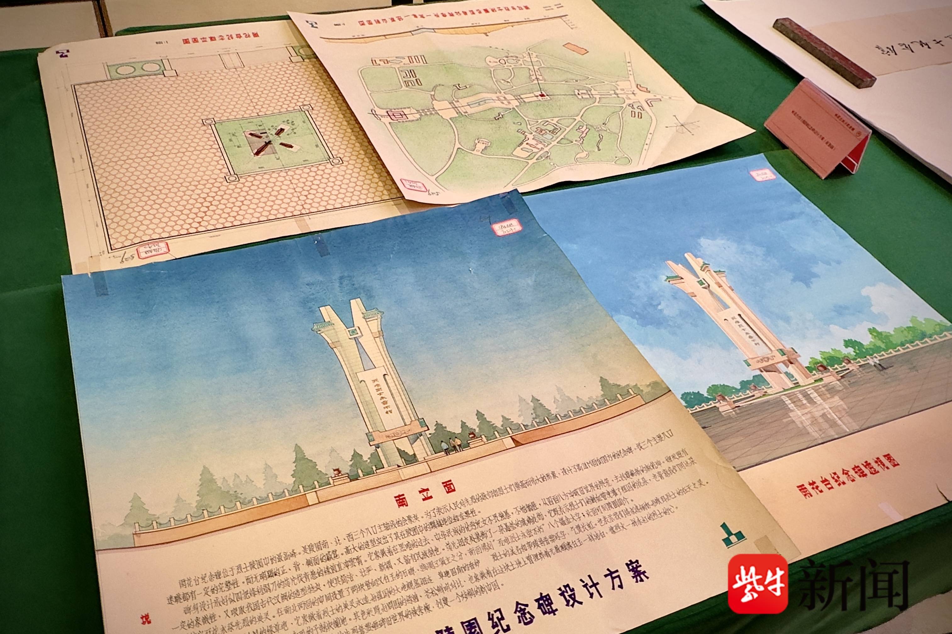 亮点之二是陵园纪念设施中纪念碑、纪念馆设计稿。从1949年筹建到1996年中轴线工程“忠魂亭”竣工,雨花台烈士陵园的建设历经四十余年。上世纪80年代,烈士陵园在全国范围内征集设计方案,引起社会强烈反响,共征得578个设计方案。目前馆藏共有1200余张设计作品,此次首次对外展示的4张作品为设计师高宵制作的一组方案。