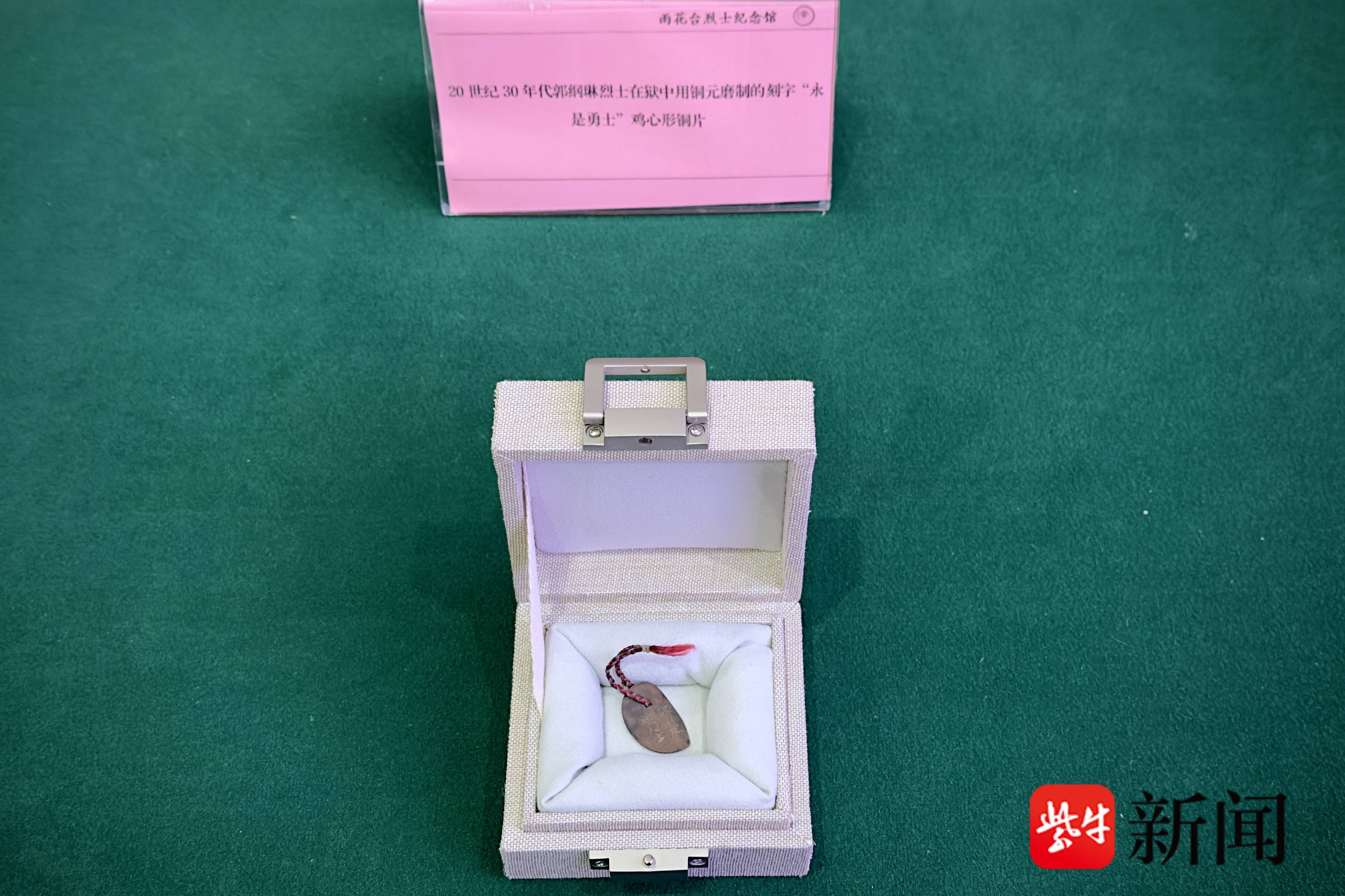 展出亮点之一是新征集入藏的1950年7月2日《新华日报》。该报纸刊发有南京兴建烈士陵园筹备委员会“征集在宁牺牲之人民革命烈士的史迹”启事,见证了雨花台人“为英烈寻史、为后人留忆”的初心起点。通过上世纪50年代这场征集,郭纲琳烈士的哥哥郭纲伦捐赠了郭纲琳烈士在狱中磨制的鸡心形铜片,上刻“永是勇士”。此件为一级文物,也在此次鉴研会上呈现。
