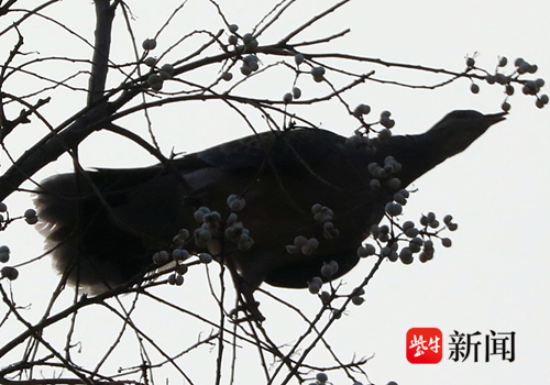 南京夜生活论坛网12月17日讯(通讯员 徐福庚 记者 闫春旭)在南京老门东街区,一群群鸟儿飞落在乌桕树上正欢快地觅食,感觉冬日都变得温暖了。乌桕果的白色蜡皮富含脂肪,能为斑鸠提供能量,帮助其抵御寒冷。