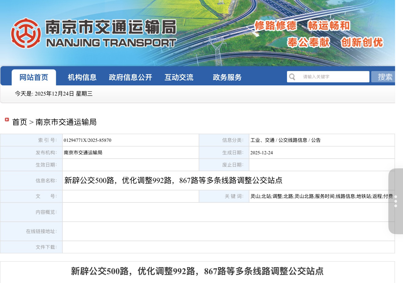 南京新生圩长江大桥于正式通车后,大桥什么时候通公交成了市民最关心的问题之一。12月24日,记者从南京市交通运输局获悉,为进一步优化公交线网布局,提升公共交通服务效能,方便六合、江宁地区市民出行,自2025年12月28日首班车起,新辟公交500路,除此之外,还将优化调整992路,867路等多条线路调整公交站点。具体如下: