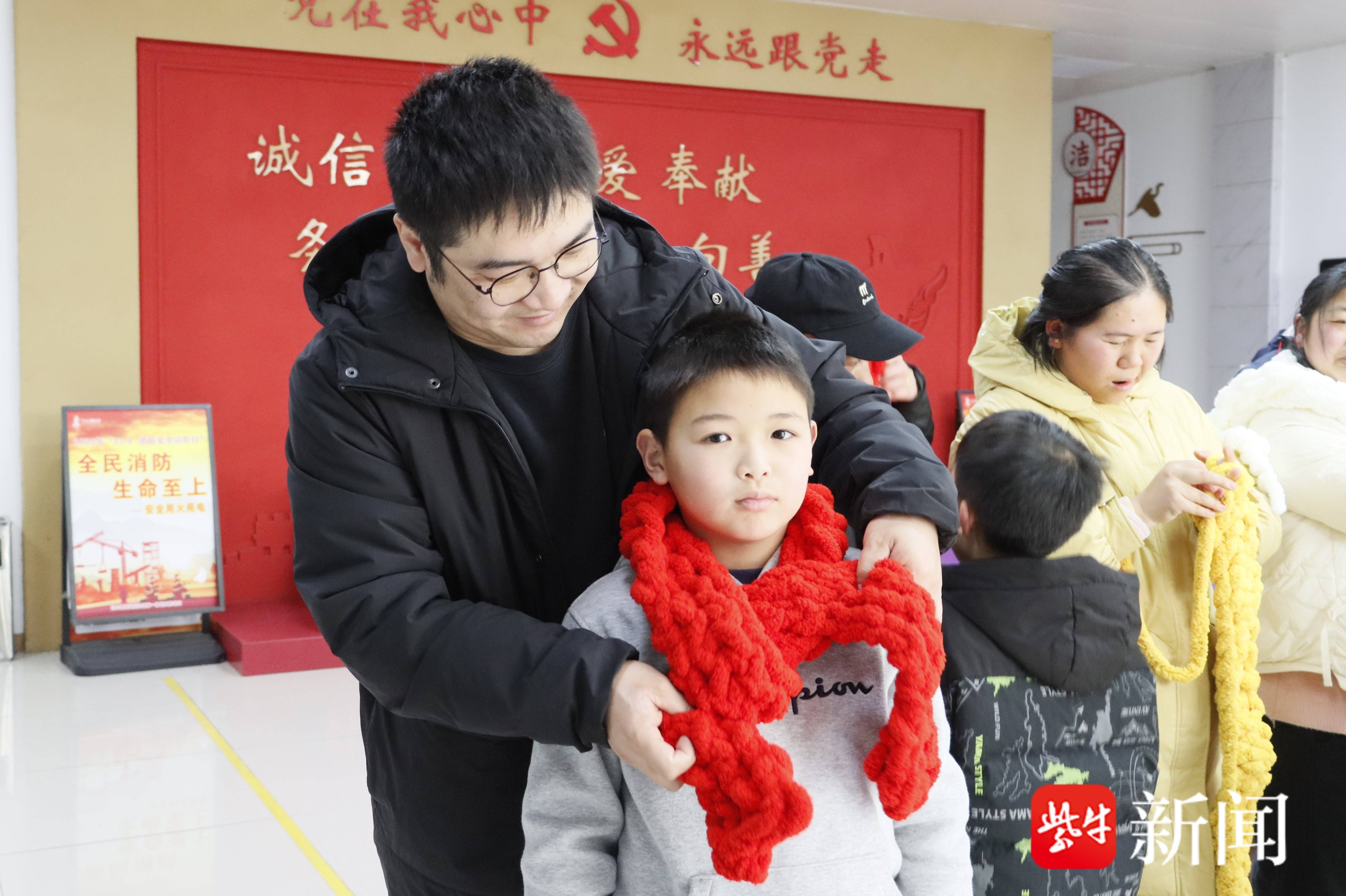 最令人动容的时刻莫过于温情互赠环节。孩子们小心翼翼地将自己亲手编织的围巾为父母戴上,用稚嫩的小手传递着对父母的感激和爱意;而父母们则为孩子佩戴上另一条围巾,眼中满是对孩子的疼爱和期许。这一刻,时间仿佛静止,所有的忙碌和辛劳都化作了无尽的温暖和感动。围巾虽轻,但承载的是亲子间深厚的情感和无尽的关爱。