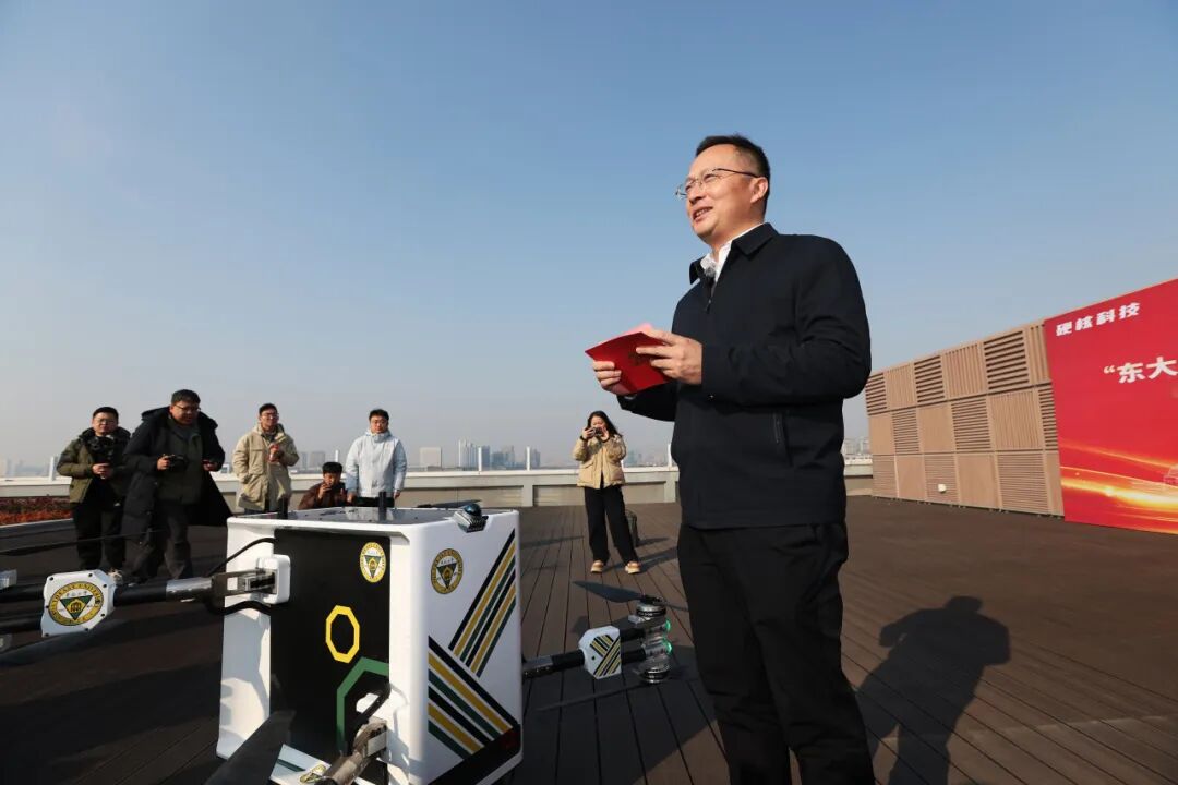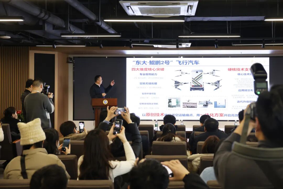 1月23日,时隔“东大·鲲鹏1号”发布一年多,东南大学飞行汽车科研团队研发的“东大·鲲鹏2号”首次公开亮相——从东南大学九龙湖校区缓缓升空,越过湖面,稳稳降落在对岸三江楼五楼的户外平台。